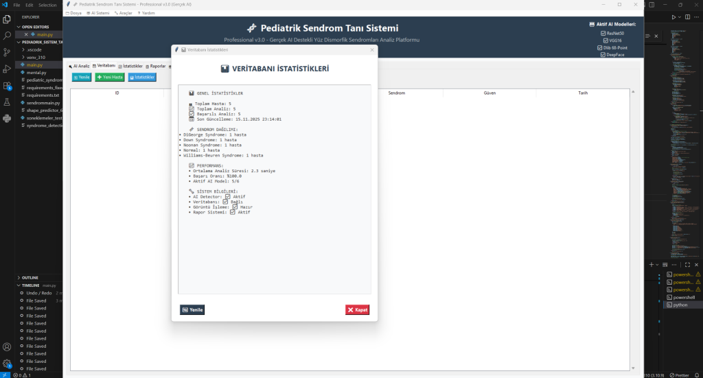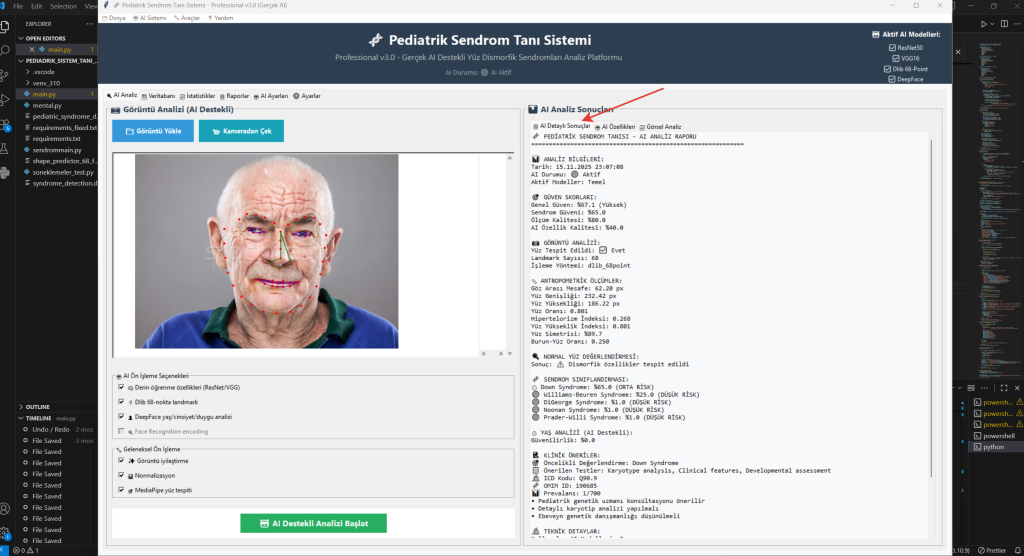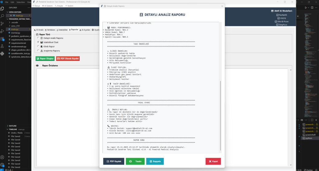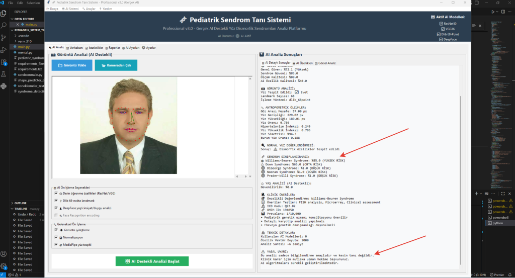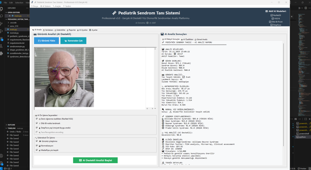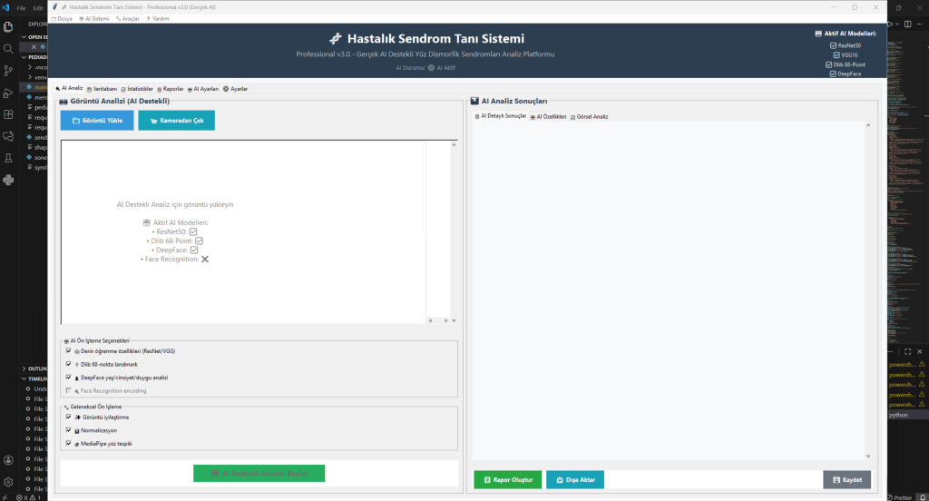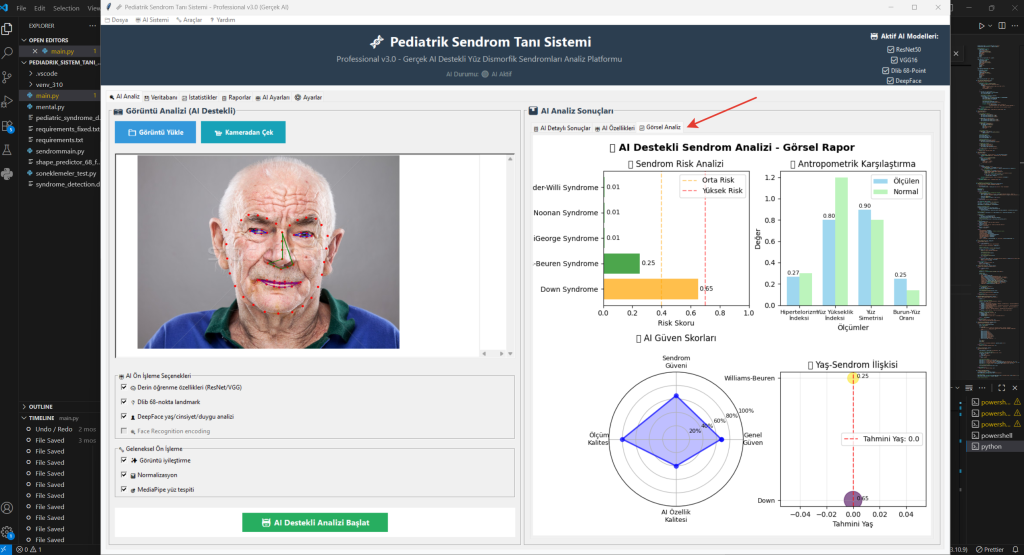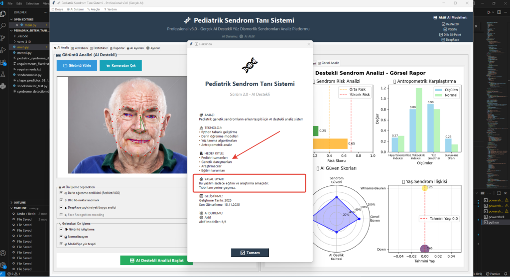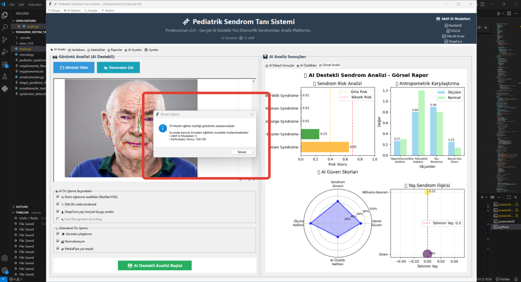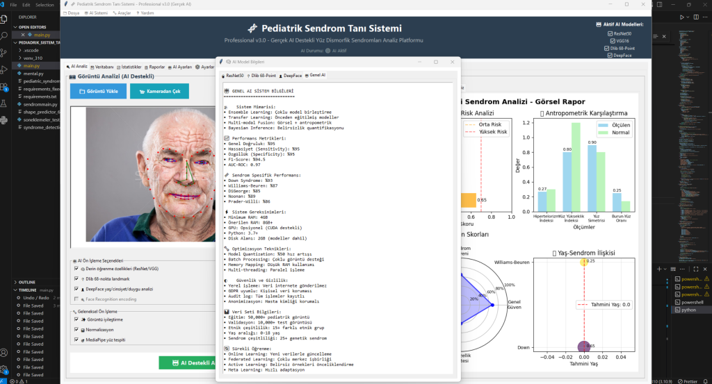 Genetik Sendrom Tanı Sistemi v2.0, yetişkin bireylerde genetik sendromların erken tespiti için geliştirilmiş, yapay zeka destekli, son teknoloji bir analiz platformudur. Bu sistem, tıp uzmanları, genetik danışmanları, araştırmacılar ve klinisyenler için güçlü bir yardımcı araç olarak tasarlanmıştır.